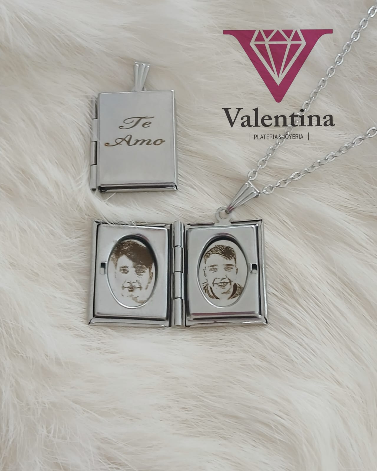 Relicario Acero Quirúrgico rectangular 24x16mm con Cadena Forcet 45cm. INCLUYE EL GRABADO DE 2 IMAGENES.